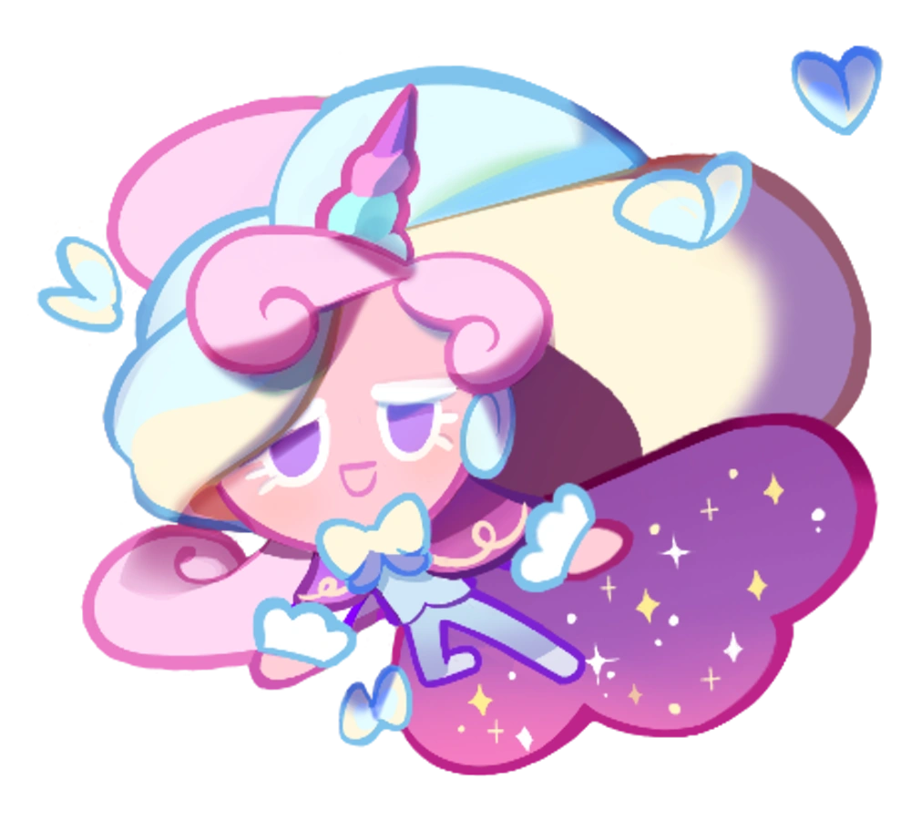 Cream Unicorn Cookie is a magical unicorn who inhabits CookieLand, a desolate amusement park that only opens its gates to Cookies with the purest of hearts. Due to being alone in the amusement park for many years, they often find themself longing for the days when it was lively and full of happiness and laughter, and as a result, they became shy and withdrawn around other Cookies. However, one day, multiple Cookies, most notably