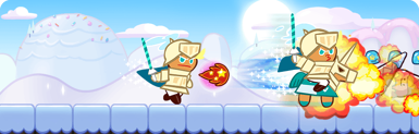 Pitaya Dragon Cookie's tail, which later became his Pet. To Pitaya Dragon Cookie, however, they didn't notice it being cut off at all. - Knight Cookie is the one of the few Cookies whose Blast Jelly trail is blue.