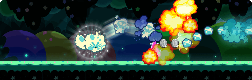 Throws a Crumble Smokescreen that melts obstacles and transforms nearby Jellies into Cheese Crumble Jellies. The transformation will continuously spread to other Jellies up to a certain range. Level Up for more points for Crumble Smokescreen and Cheese Crumble Jellies.