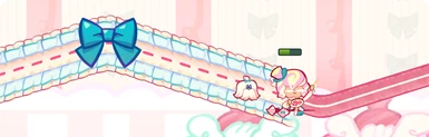 Creamtese, in the first half of the Project Cookie Runway update. While running, a sewing pattern appears, and he flies along the pattern to connect laces and attach ribbons.